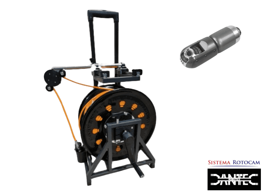Sistema de inspección de pozos completo con carrete de cable, cámara y unidad de pantalla con teclado Rotocam. Puedes adaptar varios otros componentes para ofrecer un servicio profesional.