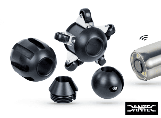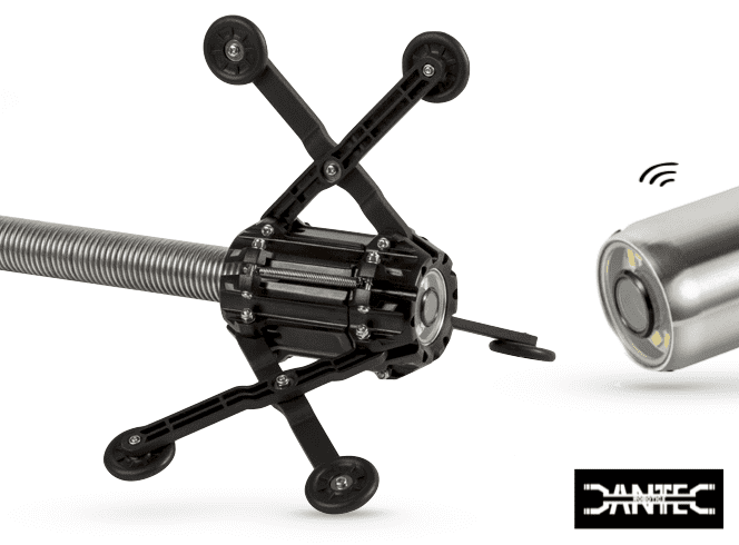Cámara axial para inspección de tuberías y desagües de alcantarillado con un diámetro de 38 mm con el sistema Tricam. Útil para la red de alcantarillado urbano y plantas industriales.