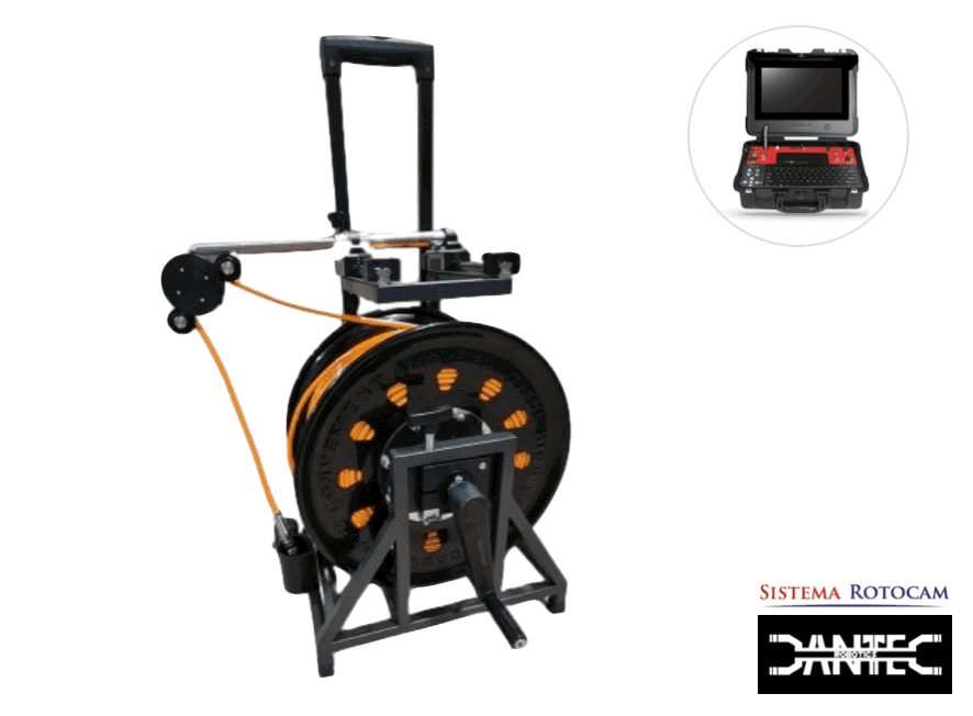 Sistema de inspección de pozos completo con carrete de cable, cámara y unidad de pantalla con teclado Rotocam. Puedes adaptar varios otros componentes para ofrecer un servicio profesional.