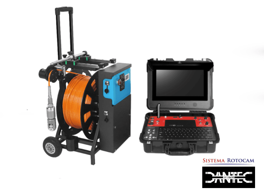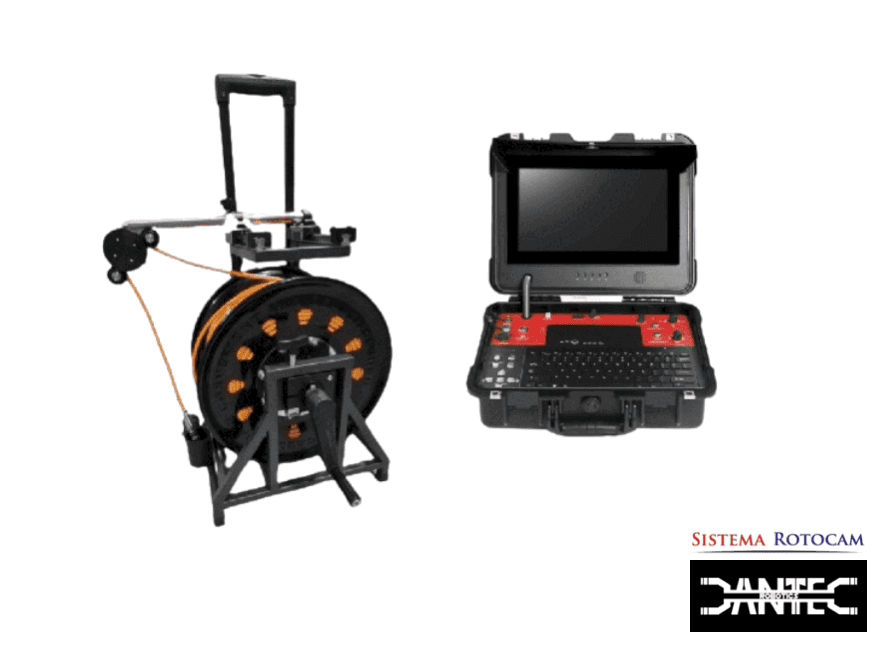 Sistema de Inspección de Pozos Completo, incluye cámara rotativa, unidad de control con monitor, teclado y joystick, bobina de cable motorizada de 200 m.