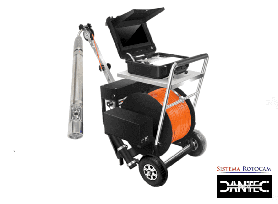 Sistema Motorizado de Inspección de Pozos – Cámara doble axial completa con bobina de cable de 300 y 500 metros y unidad de control con pantalla, teclado y joystick para el control de la videoinspección profesional.